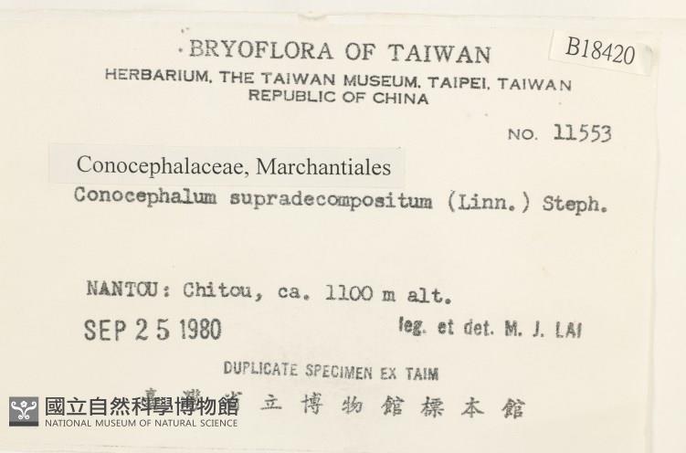Scientific Name:Conocephalum supradecompositum