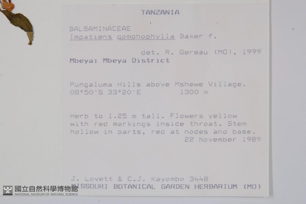 Scientific Name: Impatiens gomphophylla Baker