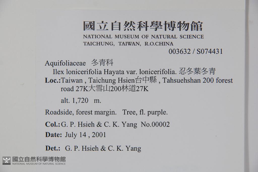 Scientific Name: Ilex lonicerifolia Hayata