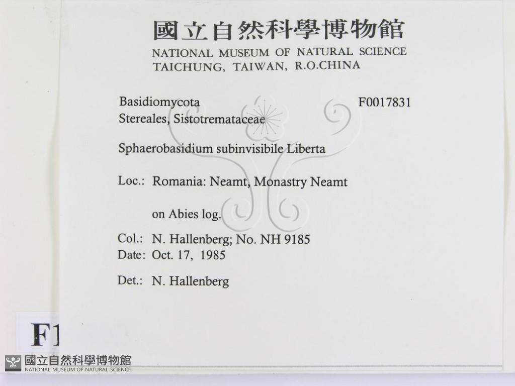 Sphaerobasidium subinvisibile Liberta