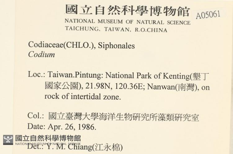 Collector:國立臺灣大學海洋生物研究所藻類研究室