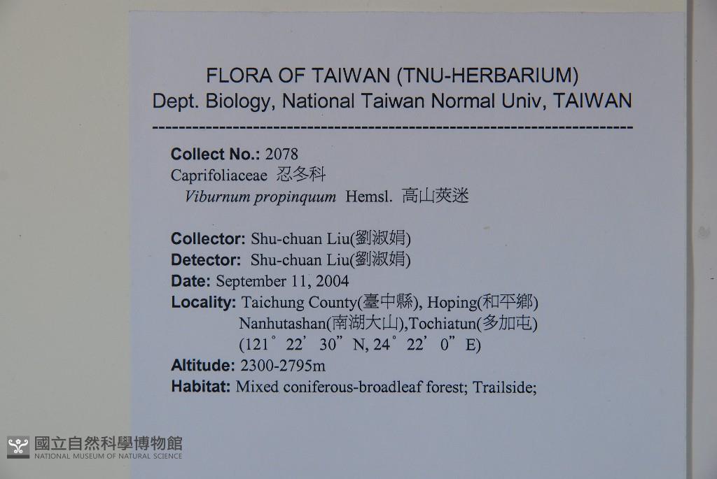 Locality:Taichung County, Hoping Township Nanhutashan, Tochiatun