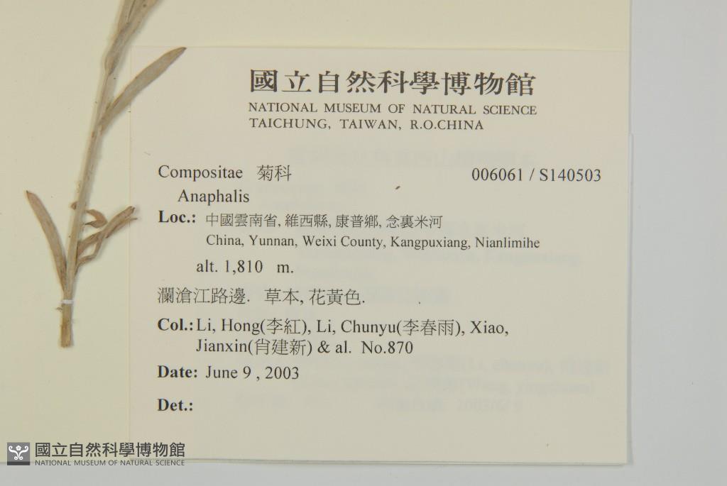 Collector:Hong Li (李紅), Chun-Yu Li (李春雨), Jian-Xin Xiao(肖建新), & al.