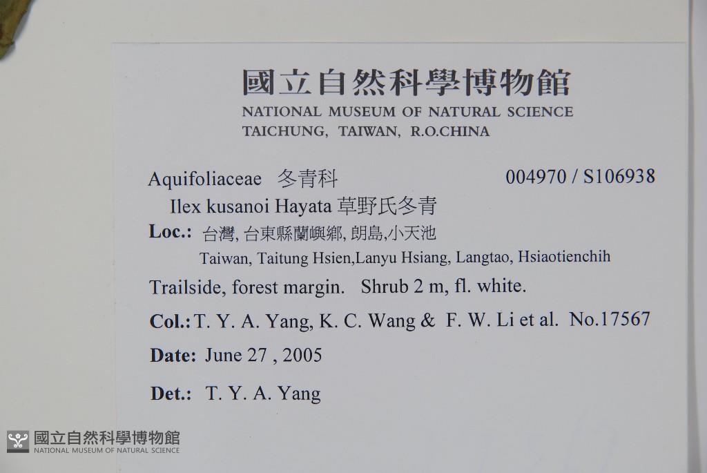 Scientific Name: Ilex kusanoi Hayata
