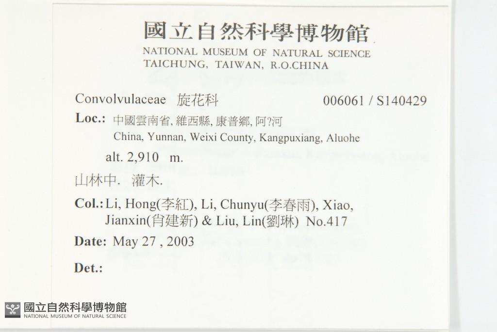 Collector:Hong Li (李紅), Chun-Yu Li (李春雨), Jian-Xin Xiao(肖建新) & Lin Liu (劉琳)