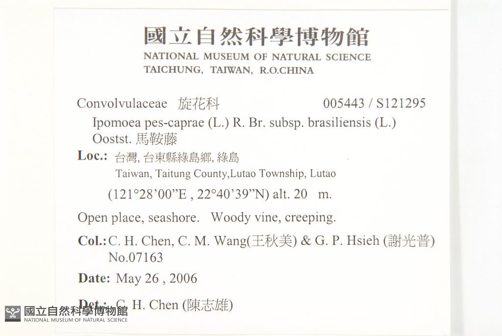 Collector:Chih-Hsiung Chen (陳志雄), Chiu-Mei Wang (王秋美), &Guang-Pu Hsieh (謝光普)