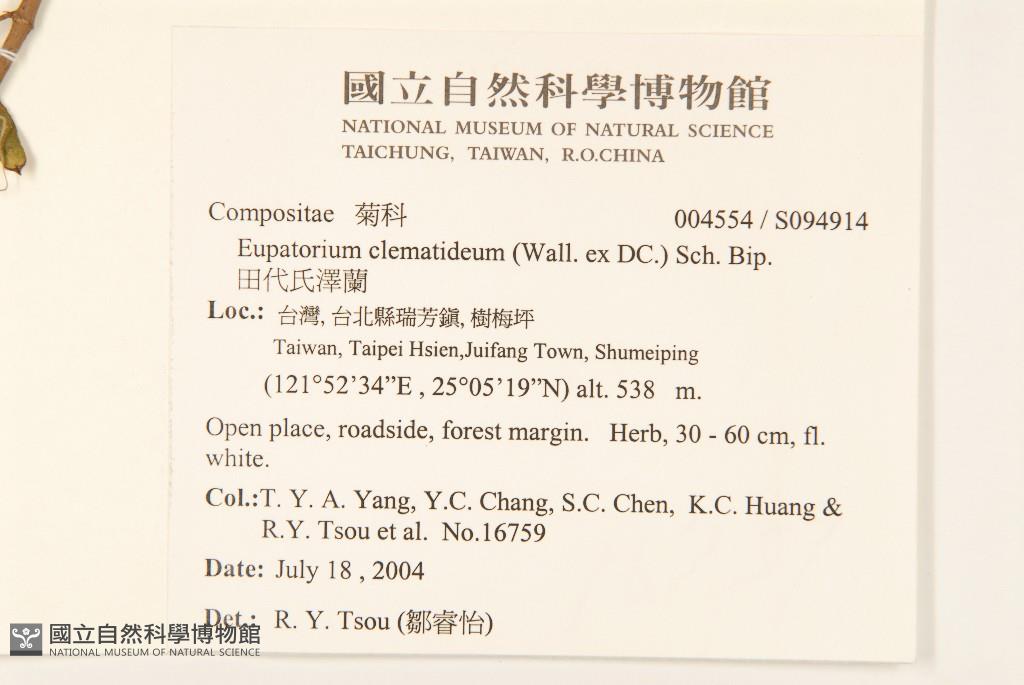 Collector:T. Y. Aleck Yang (楊宗愈), Yu-Chen Chang (張育誠), Sheng-Cheng Chen (陳勝政), & al.