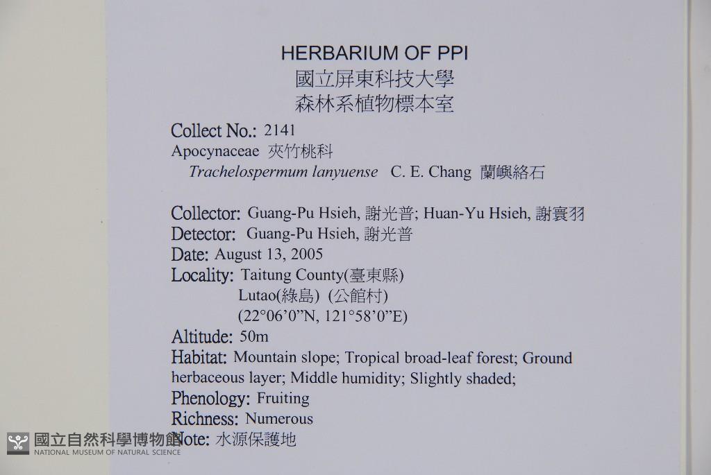 Collector:Guang-Pu Hsieh (謝光普), Huan-Yu Hsieh (謝寰羽)