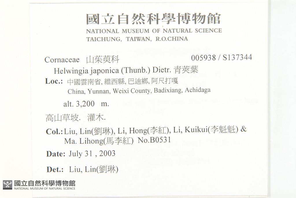 Scientific Name: Helwingia japonica (Thunb.) Dietr.