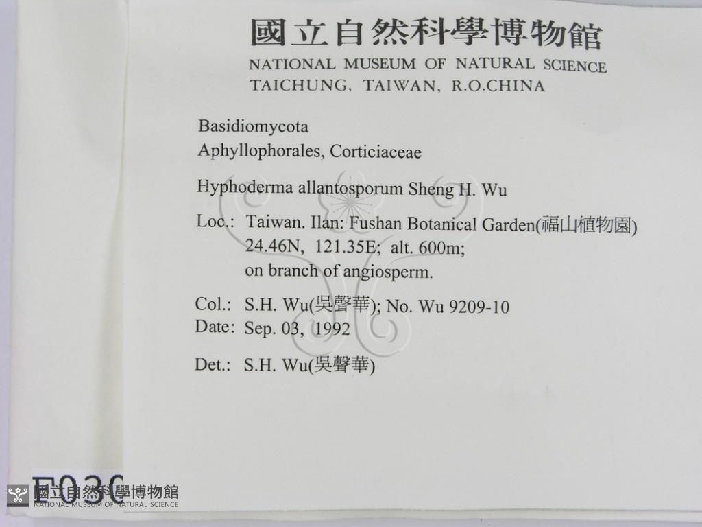 Hyphoderma allantosporum Sheng H. Wu