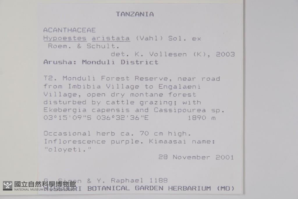 Locality:Tanzania、Arusha Monduli District. T2. Monduli Forest Reserve.