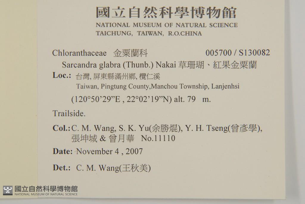 Collector:C. M. Wang, S. K. Yu(余勝焜), Y. H. Tseng(曾彥學), 張坤城 & 曾月華