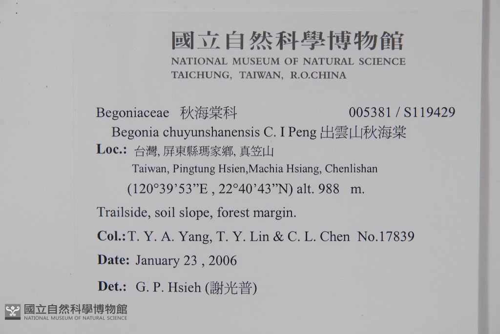 Collector:T. Y. A. Yang, T. Y. Lin & C. L. Chen