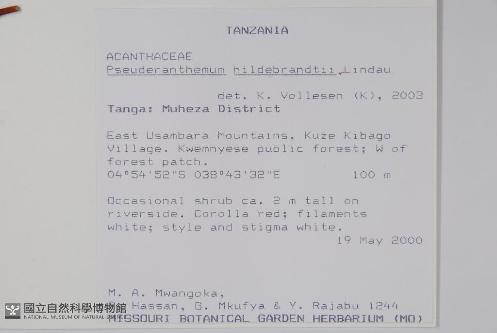Collector:M. A. Mwangoka, R. Hassan, G. Mkufya & Y. Rajabu