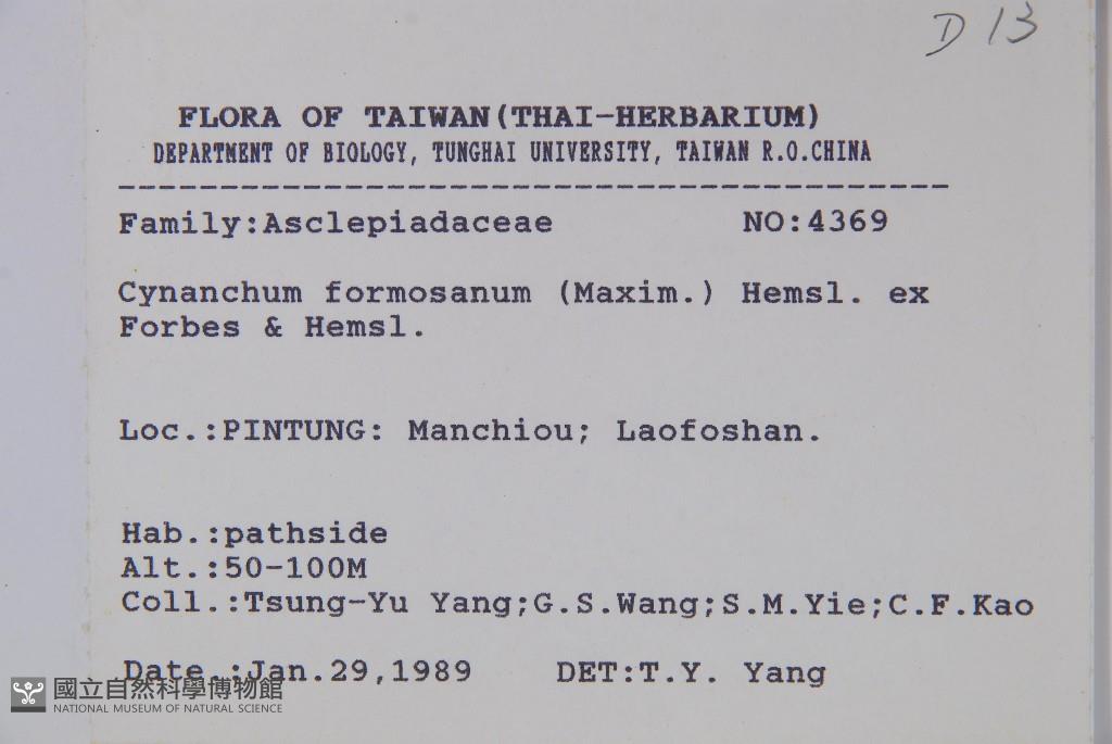 Scientific Name: Cynanchum formosanum (Maxim.) Hemsl. ex Forbes & Hemsl.