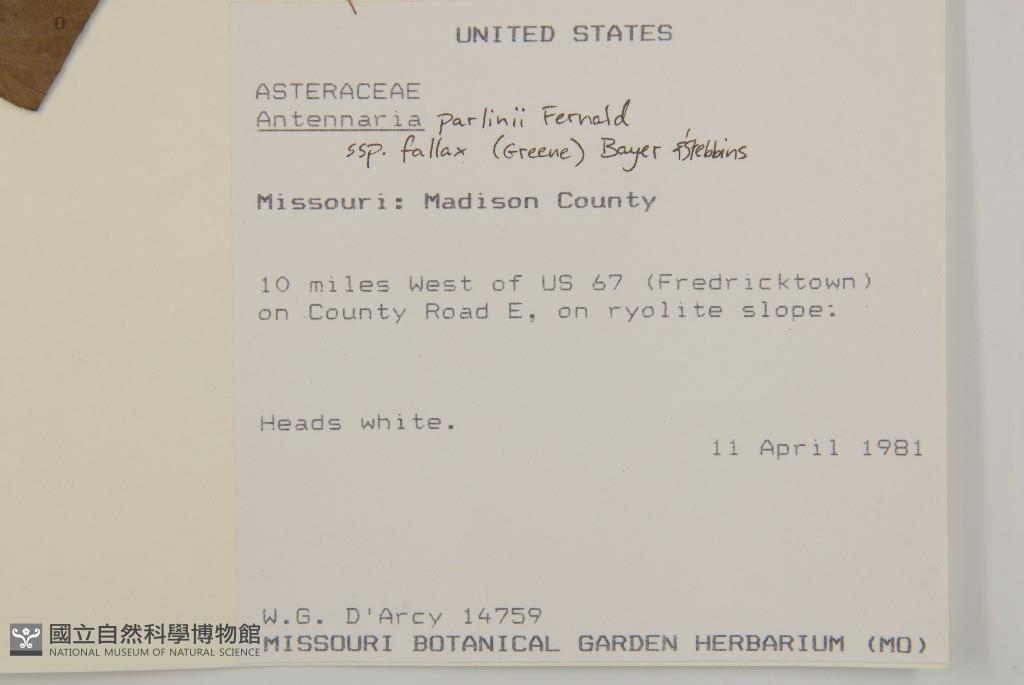 Scientific Name: Antennaria parlinii Fern. subsp. fallax (Greene) R. J. Bayer & G. L. Stebbins