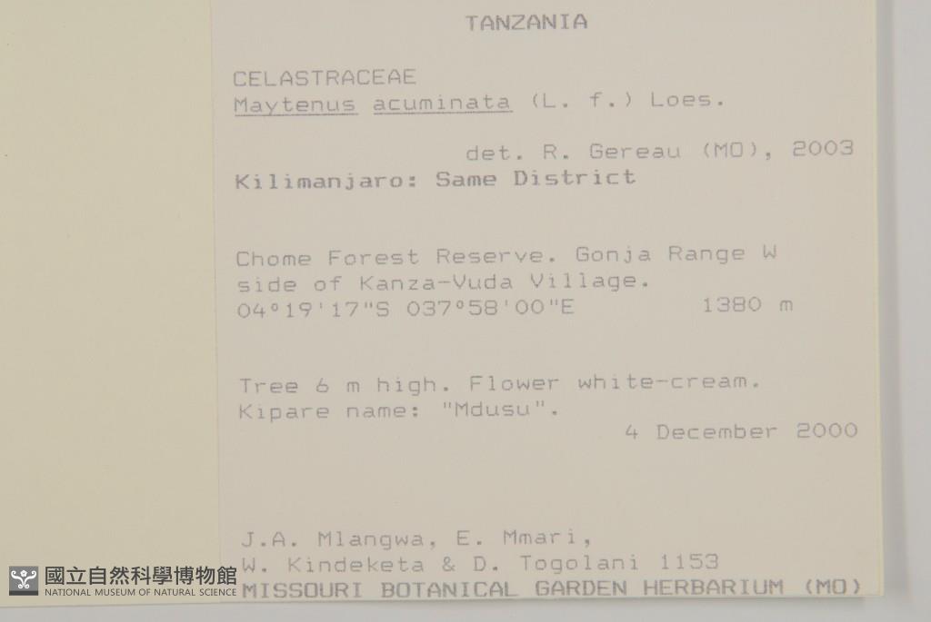 Collector:J. A. Mlangwa, E. Mmari, W. Kindeketa & D. Togolani