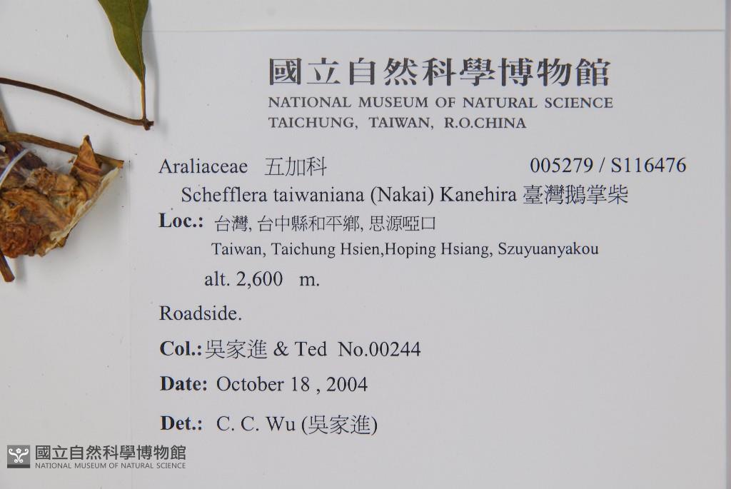 Scientific Name: Schefflera taiwaniana (Nakai) Kanehira