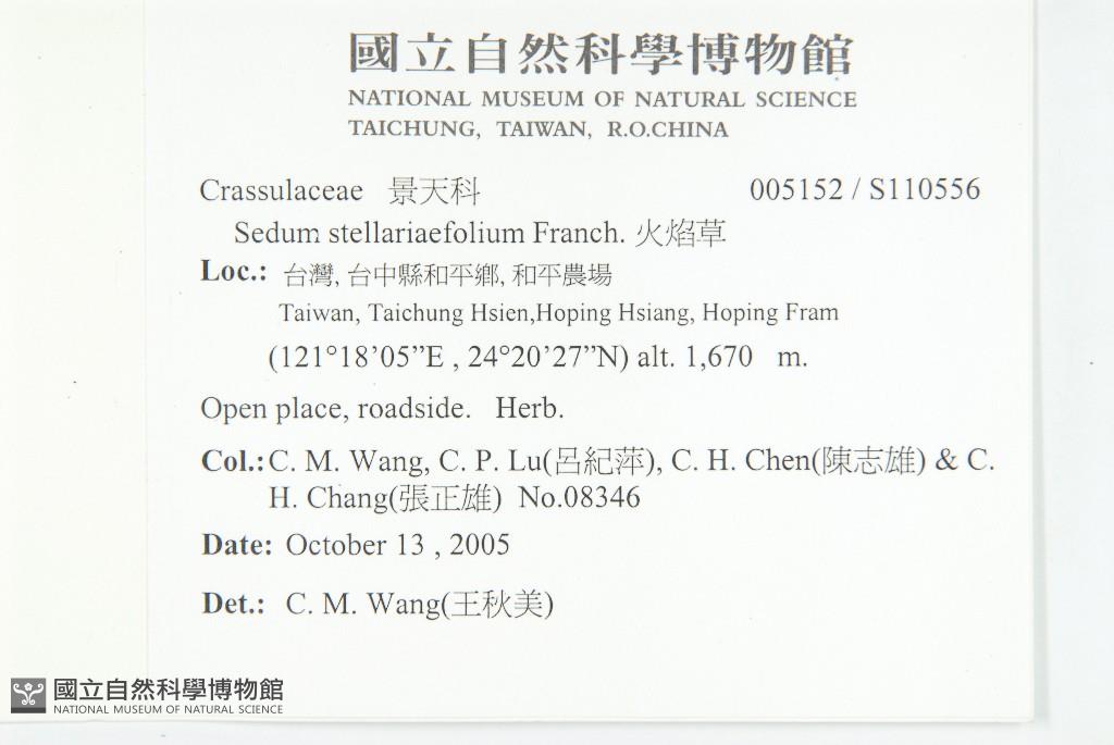 Collector:Chiu-Mei Wang (王秋美),Chi-Ping Lu (呂紀萍), Chih-Hsiung Chen (陳志雄) & al.