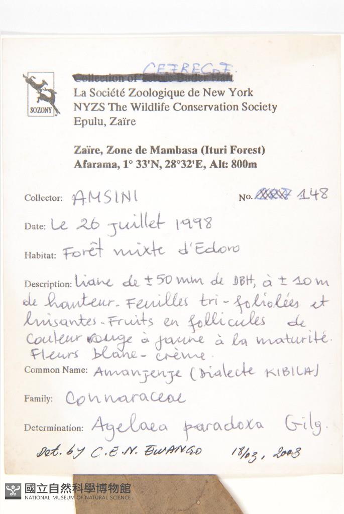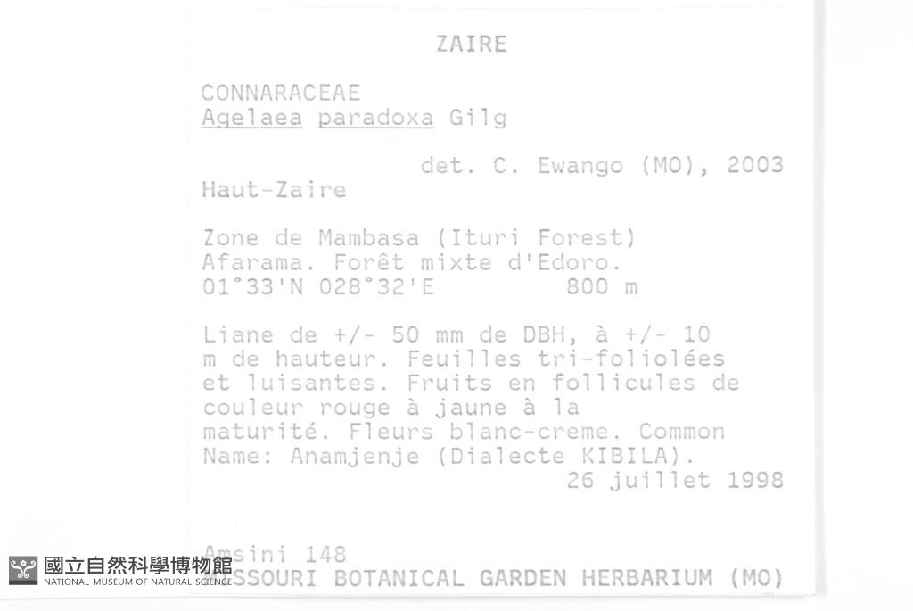 Locality:Zaire、Haut-Zaire Zone de Mambasa (Ituri Forest) Euplu.