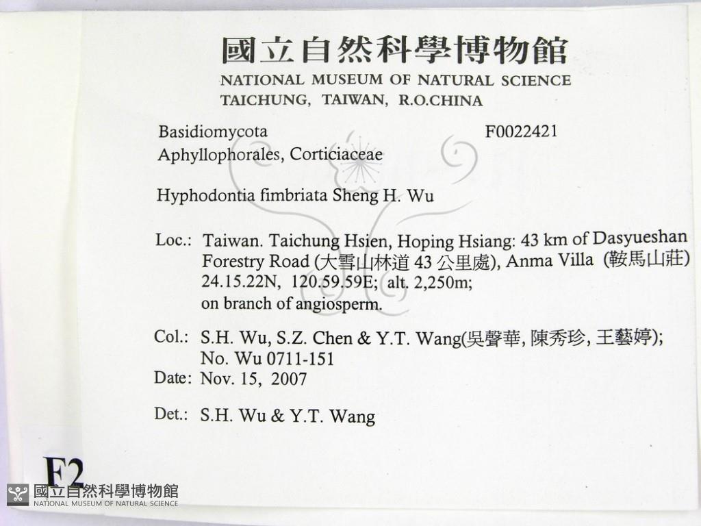 Hyphodontia fimbriata Sheng H. Wu