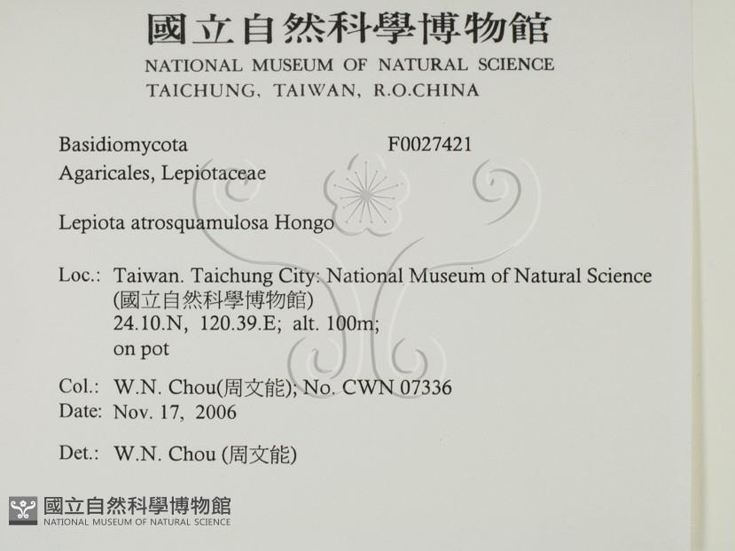 Lepiota atrosquamulosa Hongo