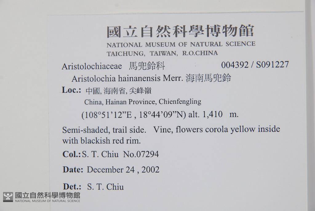 Scientific Name: Aristolochia hainanensis Merr.