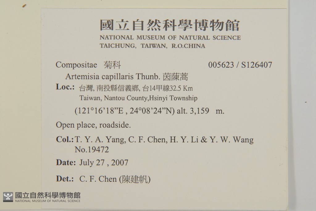 Collector:T. Y. A. Yang, C. F. Chen, H. Y. Li & Y. W. Wang