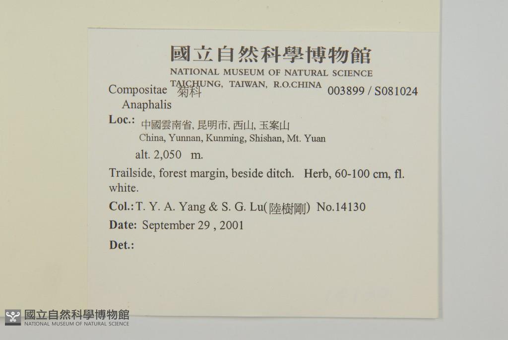 Collector:T. Y. A. Yang & S. G. Lu(陸樹剛)