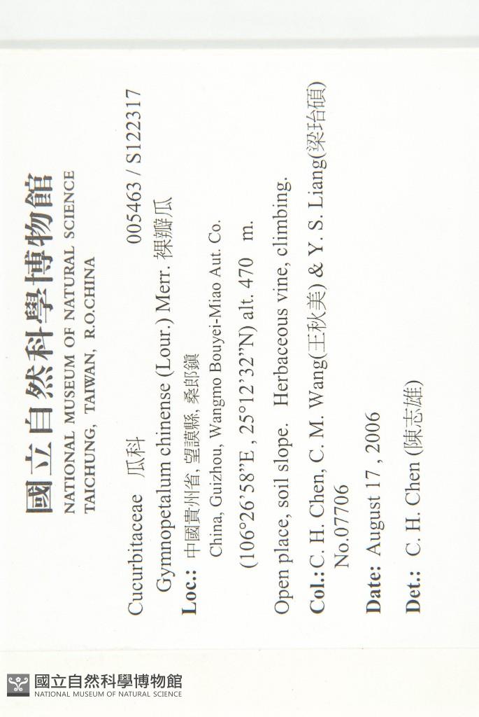 Collector:Chih-Hsiung Chen (陳志雄), Chiu-Mei Wang (王秋美), & Yi-Shuo Liang (梁珆碩)