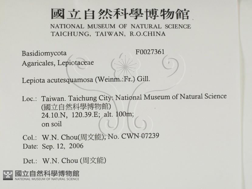 Lepiota acutesquamosa (Weinm.:Fr.) Gill.