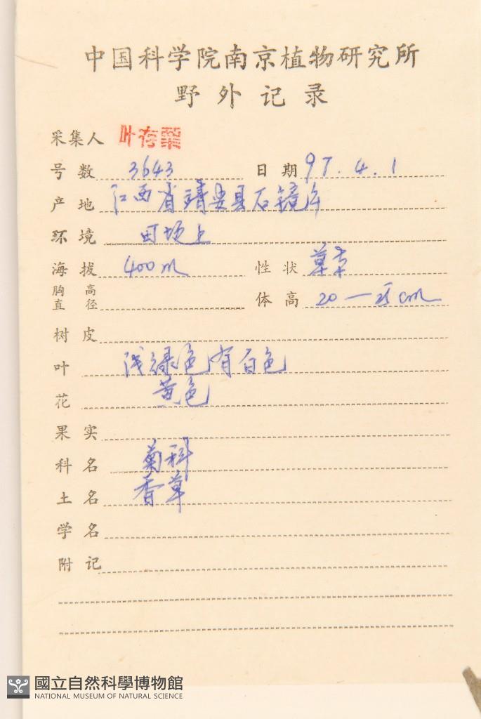 Collector:C. S. Ye(葉存粟)