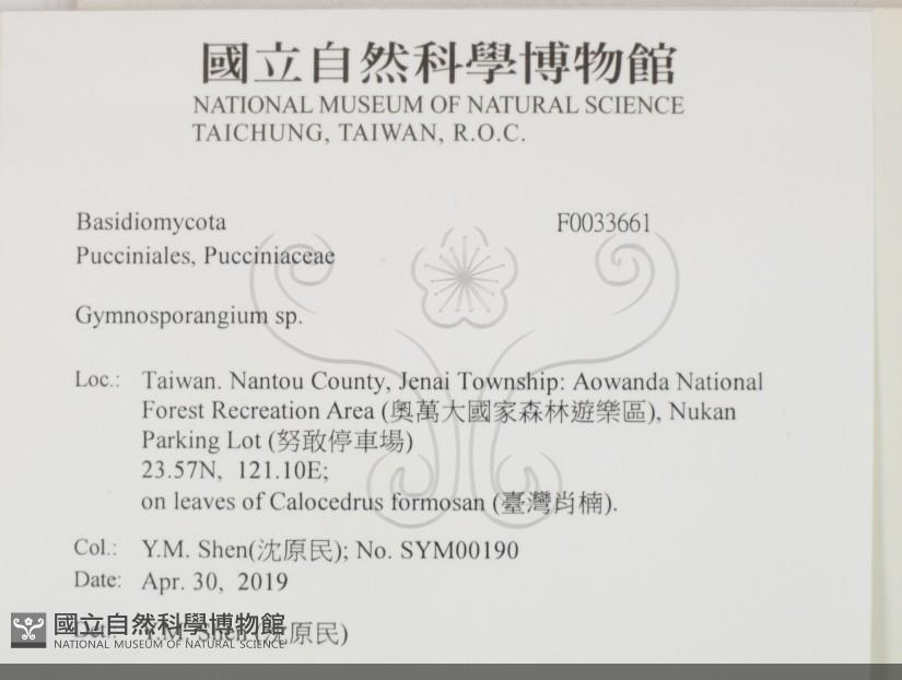 on leaves of Calocedrus formosana.