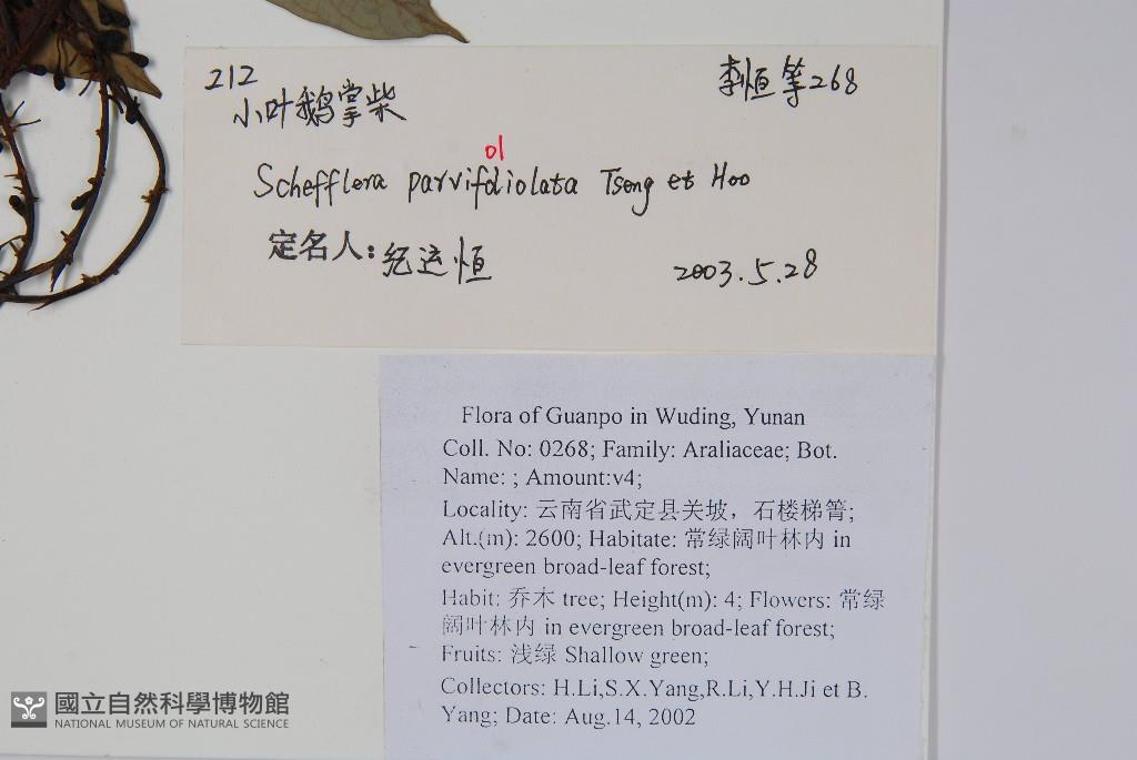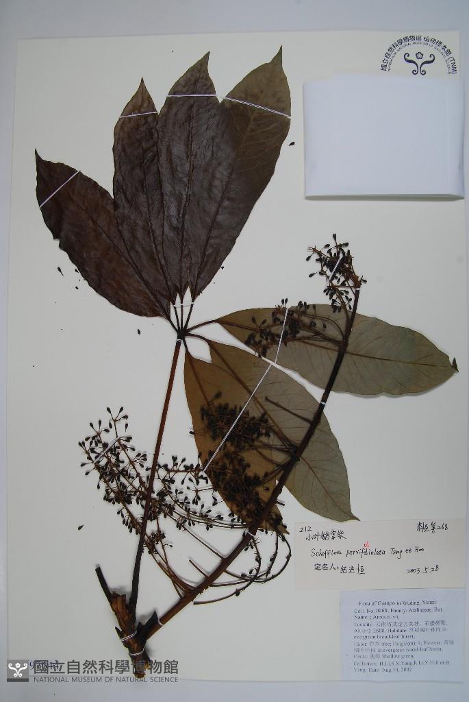 Scientific Name: Schefflera parvifoliolata C.J.Tseng & Hoo