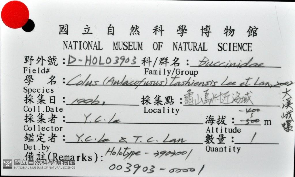 Scientific Name:Colus tashiensis Lee Y. J.,2002