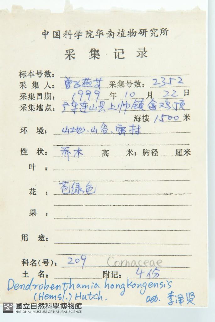 Scientific Name: Dendrobenthamia hongkongensis (Hemsl.) Hutch.
