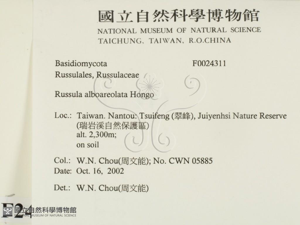 Russula alboareolata Hongo