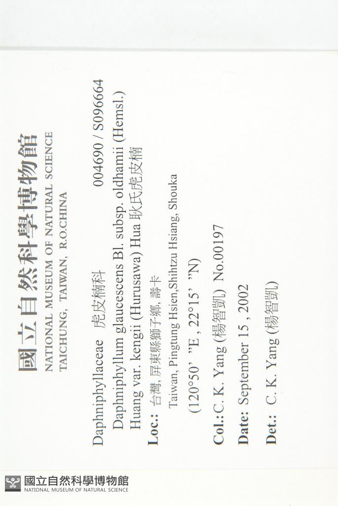 Scientific Name: Daphniphyllum glaucescens Bl. subsp. oldhamii (Hemsl.) Huang var. kengii (Hurusawa) Hua
