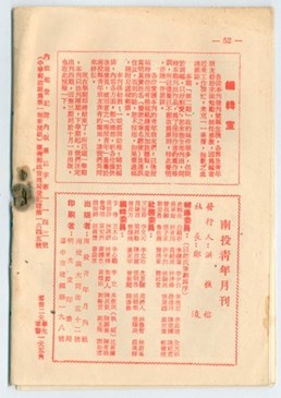 民國52年《南投青年》第二期月刊