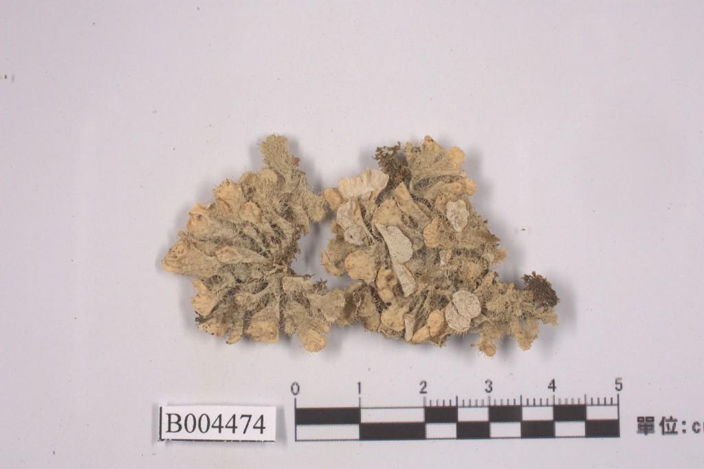 標本顏色會隨乾燥過程而改變。新鮮時地衣體上表面通常白色或灰白色,下表面則呈白色,周圍所生細毛明顯;乾燥後,表面漸呈淡黃色或淡棕色,唯周圍細毛依舊清晰可見。
