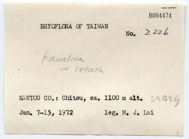 此標本由臺灣重要的植物及地衣學者賴明洲博士 (1949~2007)