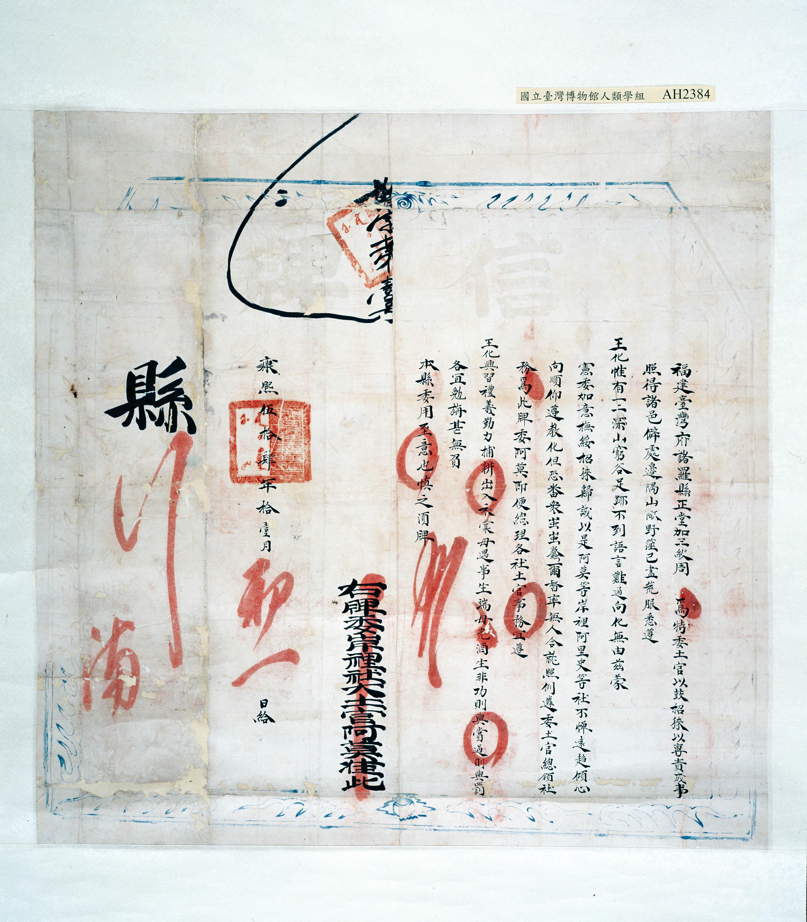 康熙伍拾肆年信照:諸羅縣正堂遴委阿莫為土官給發信牌