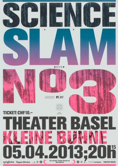 Posters for Science Slam 1 - 4 at the municipal theater of Basel (3)