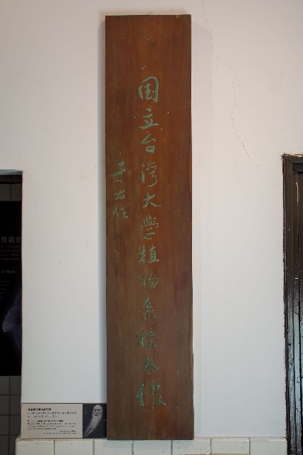 「國立臺灣大學植物系標本館」字樣木製招牌