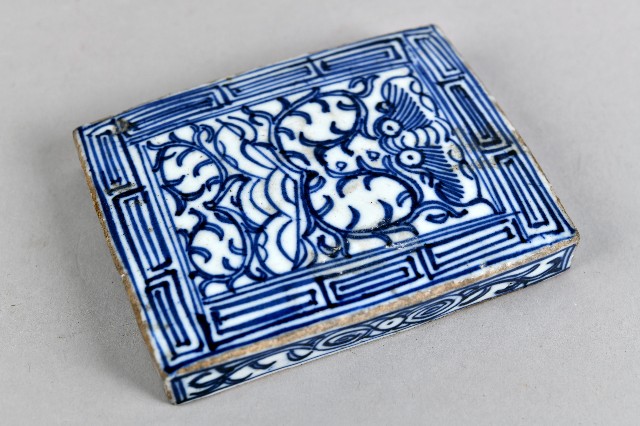青花捲草紋印泥盒-盒蓋
