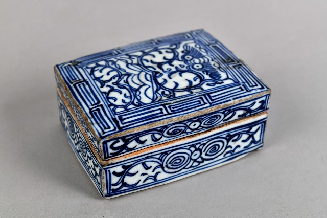 青花捲草紋印泥盒
