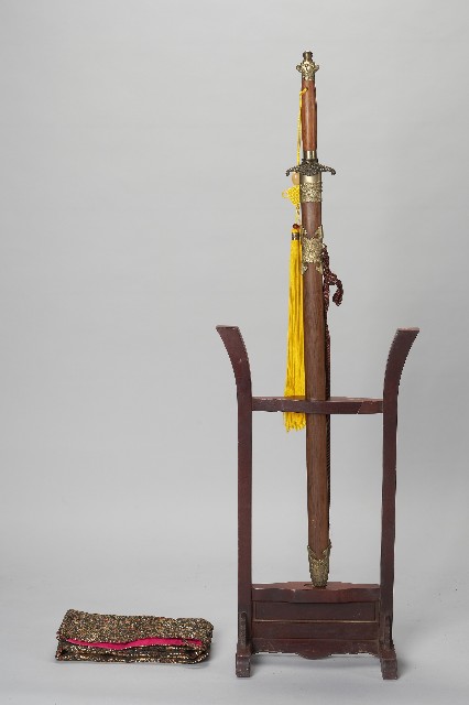 降龍劍-木製紅漆劍架