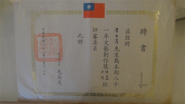 聘書-八十一年教育部文藝創作獎短篇小說組評審委員