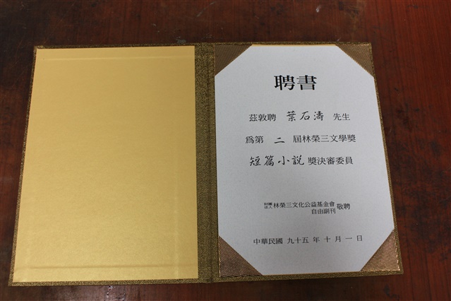 聘書-第二屆林榮三文學獎短篇小說獎決審委員