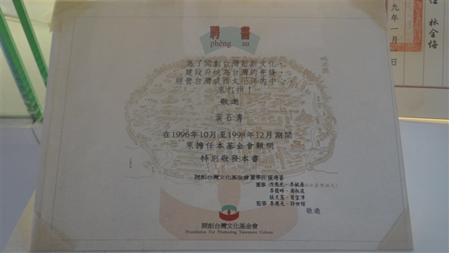 聘書-開創台灣文化基金會顧問